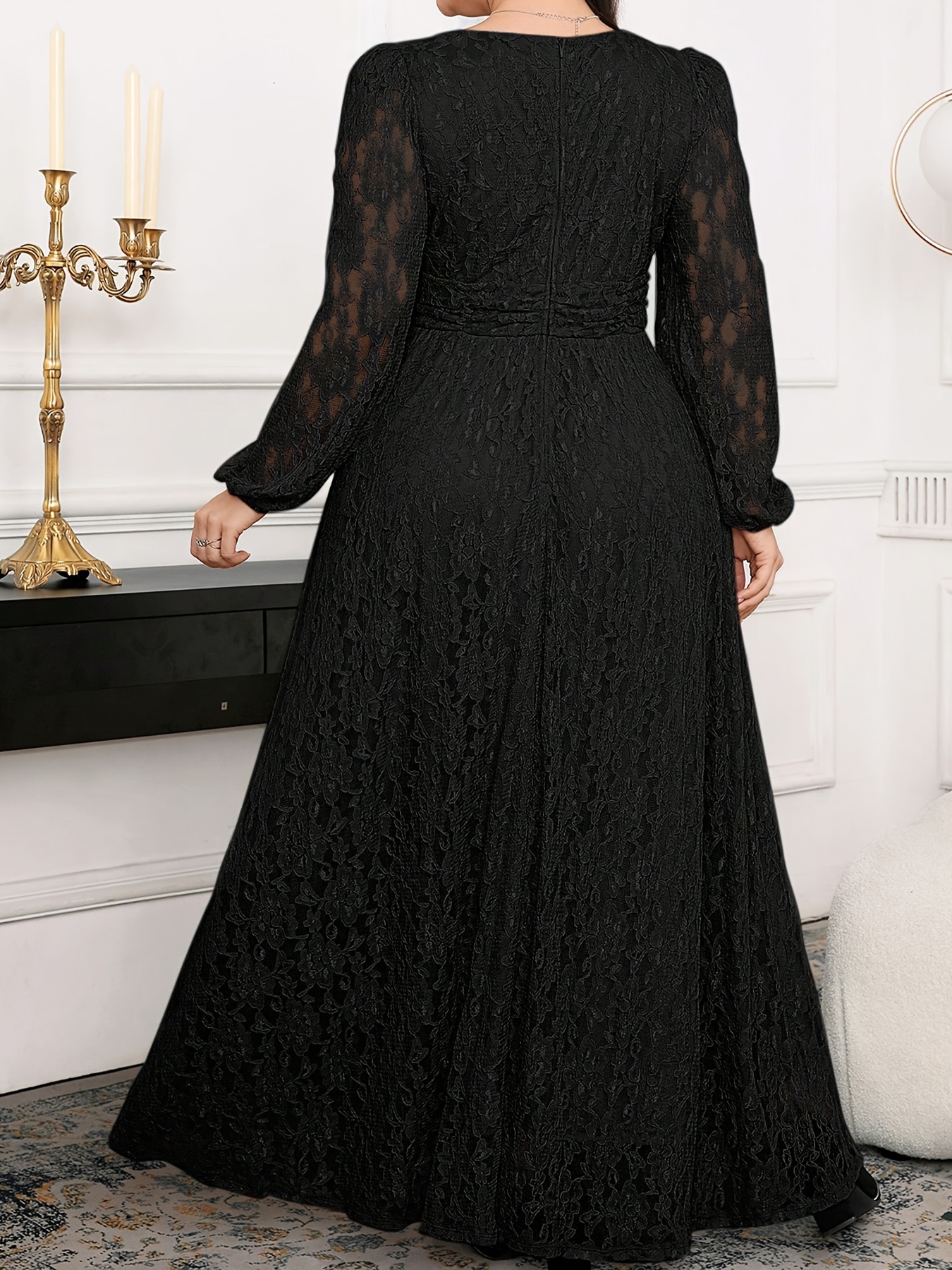 Plus Size, Plus Size Women's Dress with Lace-Up Waist for Look, Elegant Business Deep V-Neck Light Gray Autumn Winter Wedding Banquet Dress
