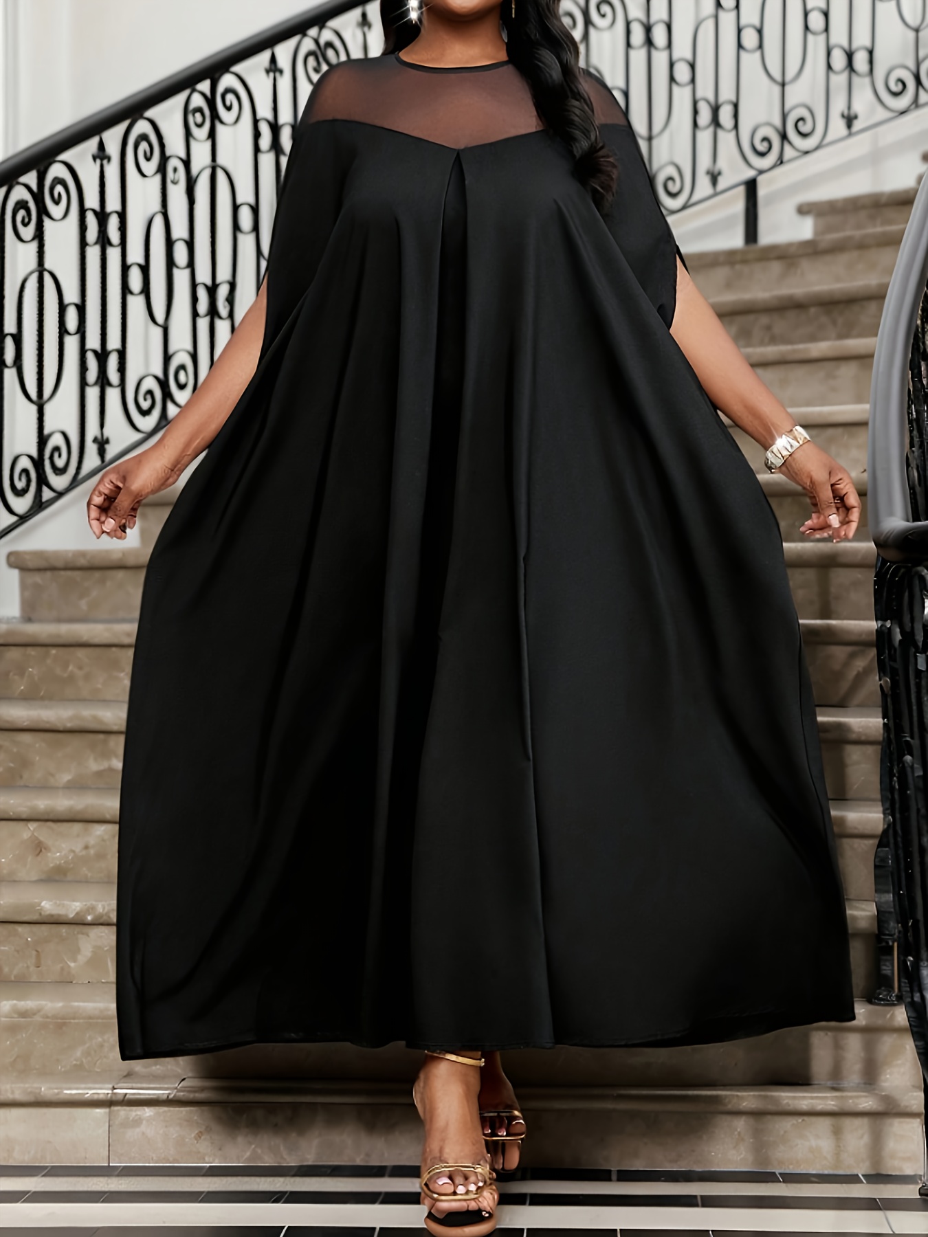 Plus Size - Plus Size, Women'S Elegant Formal Party Dress - Flowy Long Evening Gown with Round Neck, Non-Stretchy Fabric for Weddings, Galas, Business Events - All-Season Formal Attire, Formal Dresses, Wedding Guest Attire, Graceful Silhouette, Sophisticated Craftsmanship, Gala Attire, Stylish Eveningwear, Premium Material, Fashionforward Women