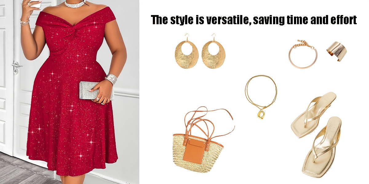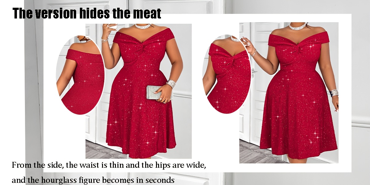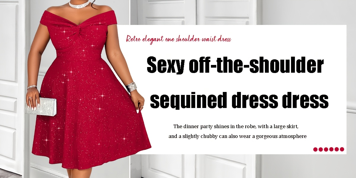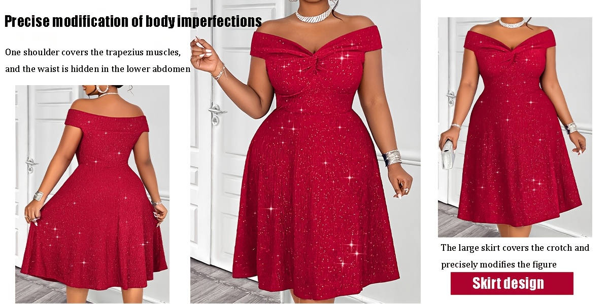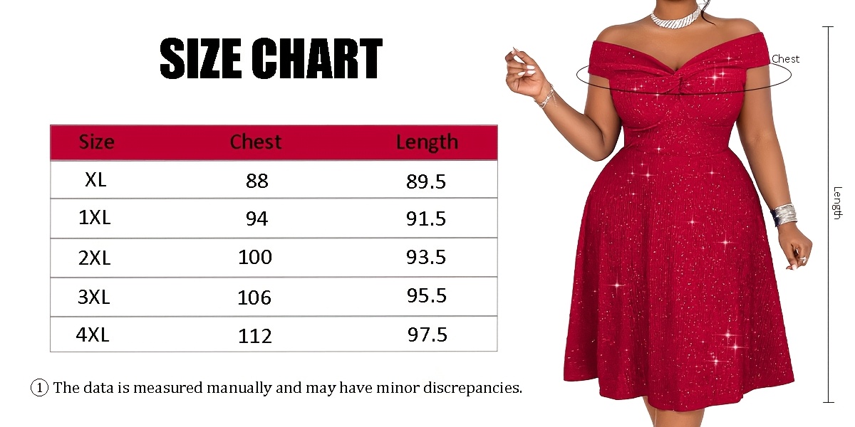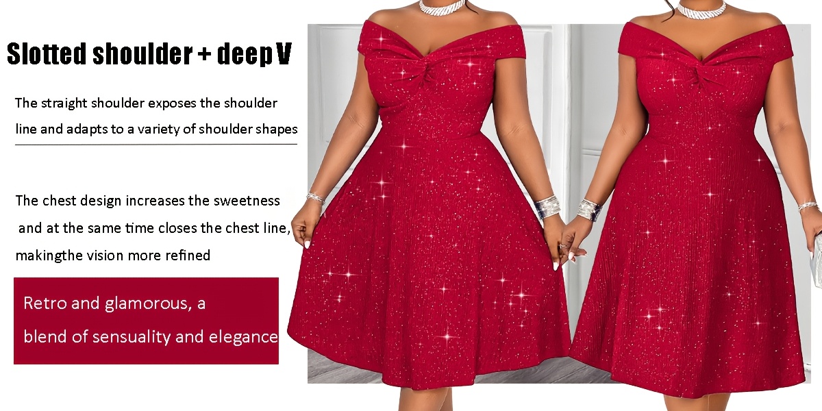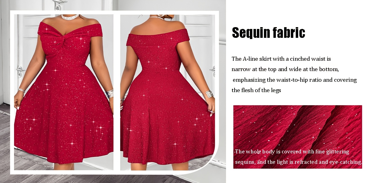 Plus Size - Plus Size, Women'S Plus Size Sexy Twist Off-Shoulder Sparkling A-Line Dress, Suitable for Parties, Cocktail Events, Christmas, Valentine'S Day, Formal Wear, Party Wear