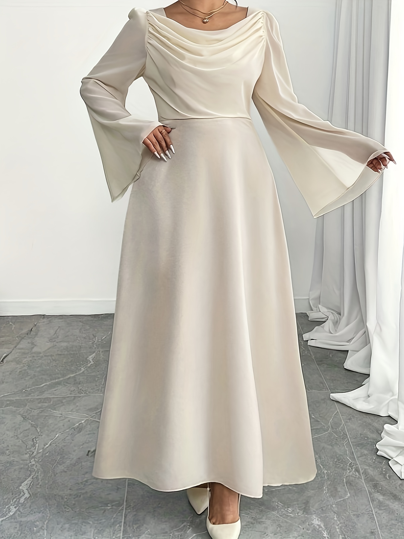Plus Size, Women's Elegant Pencil Dress with Full A-Line Silhouette - Floor-Length Formal Evening gown, Beige// - Zipper Back Closure, Plus Size Available - Wedding, Party, Prom Dress - Hand Washable Luxury Evening Gown, Formal Dress for Women, Dresses for Women Elegant Classy Formal, Plus Size Formal Dresses Elegant Plus Size, Plus Size Dresses for Women Wedding Guest, Wedding Dresses for Women Plus Size, Highquality Fabric, Premium Stitching, Bridal Guest