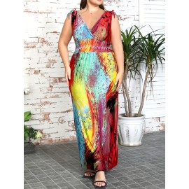 Plus Size Boho Dress Tie Dye Print Beach Vacation Lace Up High Waisted Spring/Summer Elegant Plus Dress