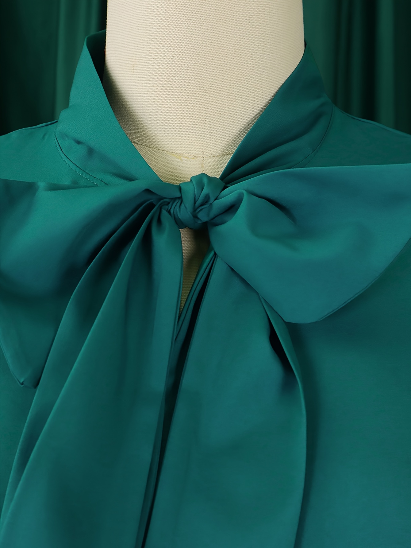 [New Arrival Plus Size Dress] Spring/Summer New Arrival - Elegant Plus Size Casual Chic Dress with Ruffled Bell Sleeves, Bow Detail, Stand Collar | Solid Color, Non-Stretch Fabric
