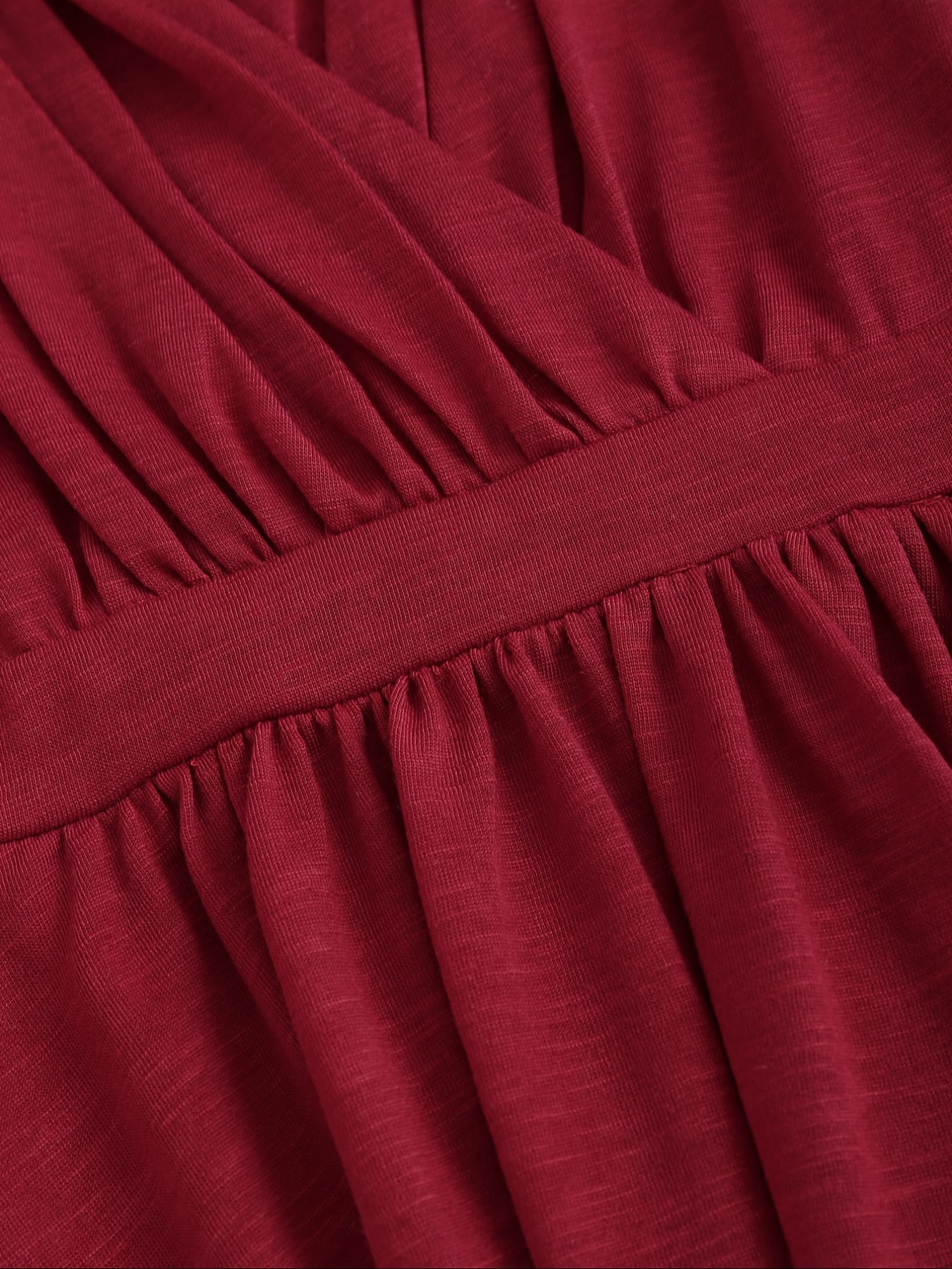 Plus Size Solid Keyhole Neck Belted Top, Ruched Flare Sleeve Chain Decor Elegant Top For Spring & Fall, Women's Plus Size Clothing