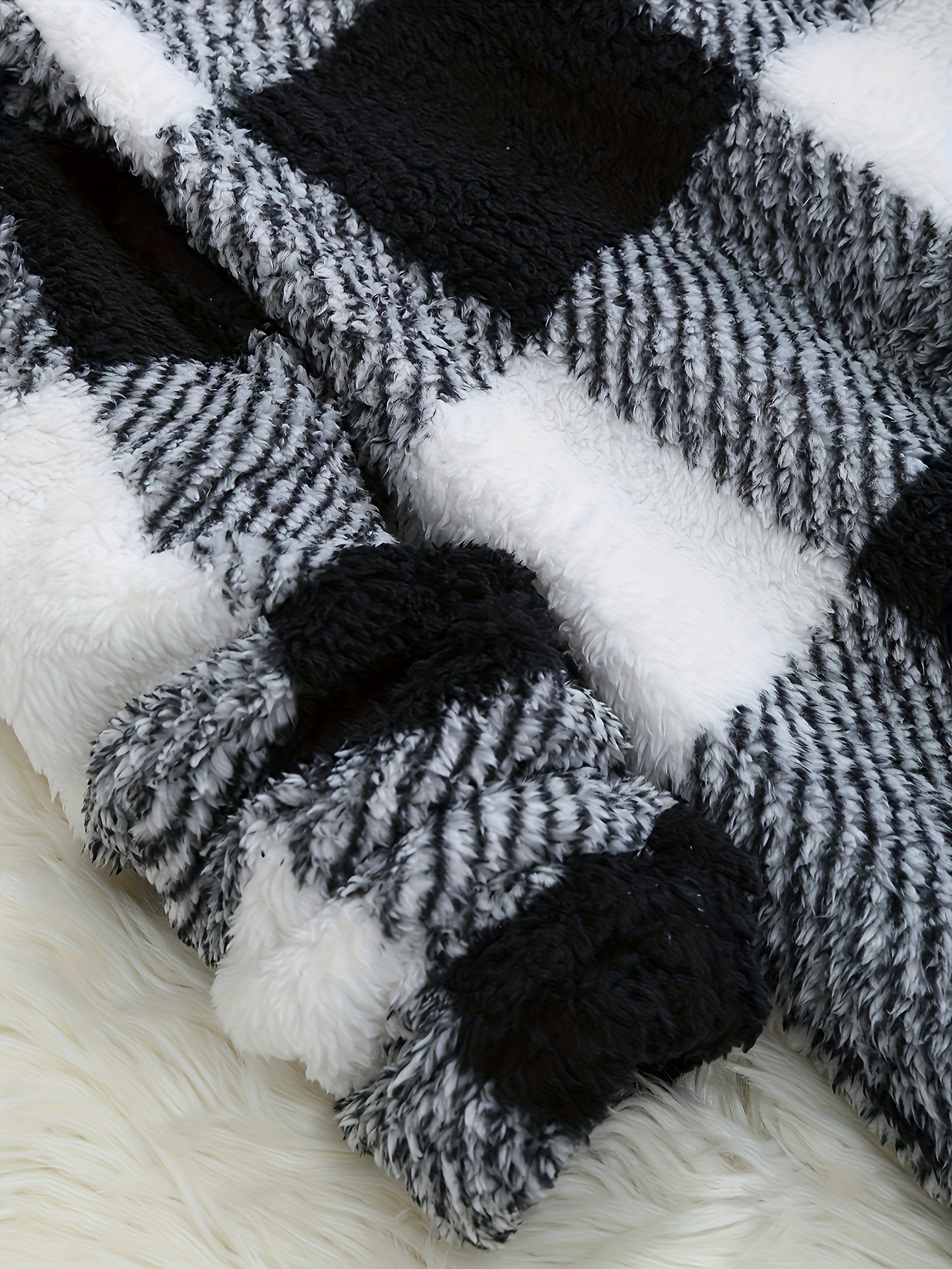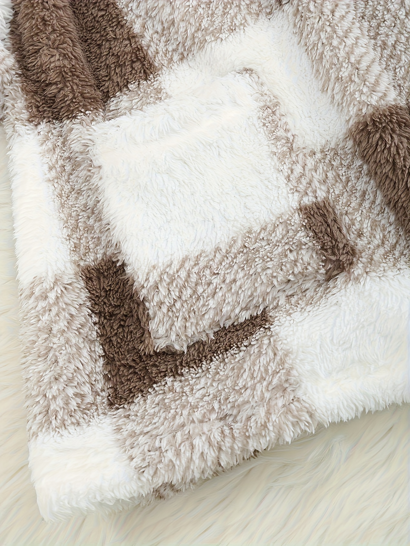 Plus Size - Women'S Plus Size Plaid Sweater - Cozy Fleece-Lined Long Sleeve Round Neck Top with Pockets, Casual Fall/Winter Wear