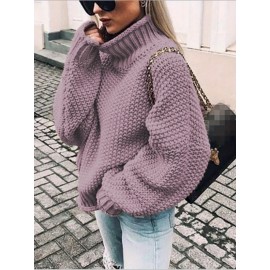 Plus Size - Women'S Plus Size Thick Sweater - Elegant High Neck Batwing Sleeves, Long Sleeve Winter Warmth, Solid Color (PurpleNavyBrown), Non-Stretch Fabric, Loose Fit for Casual & Formal Outfits - Cozy Fall & Winter Sweater for Women