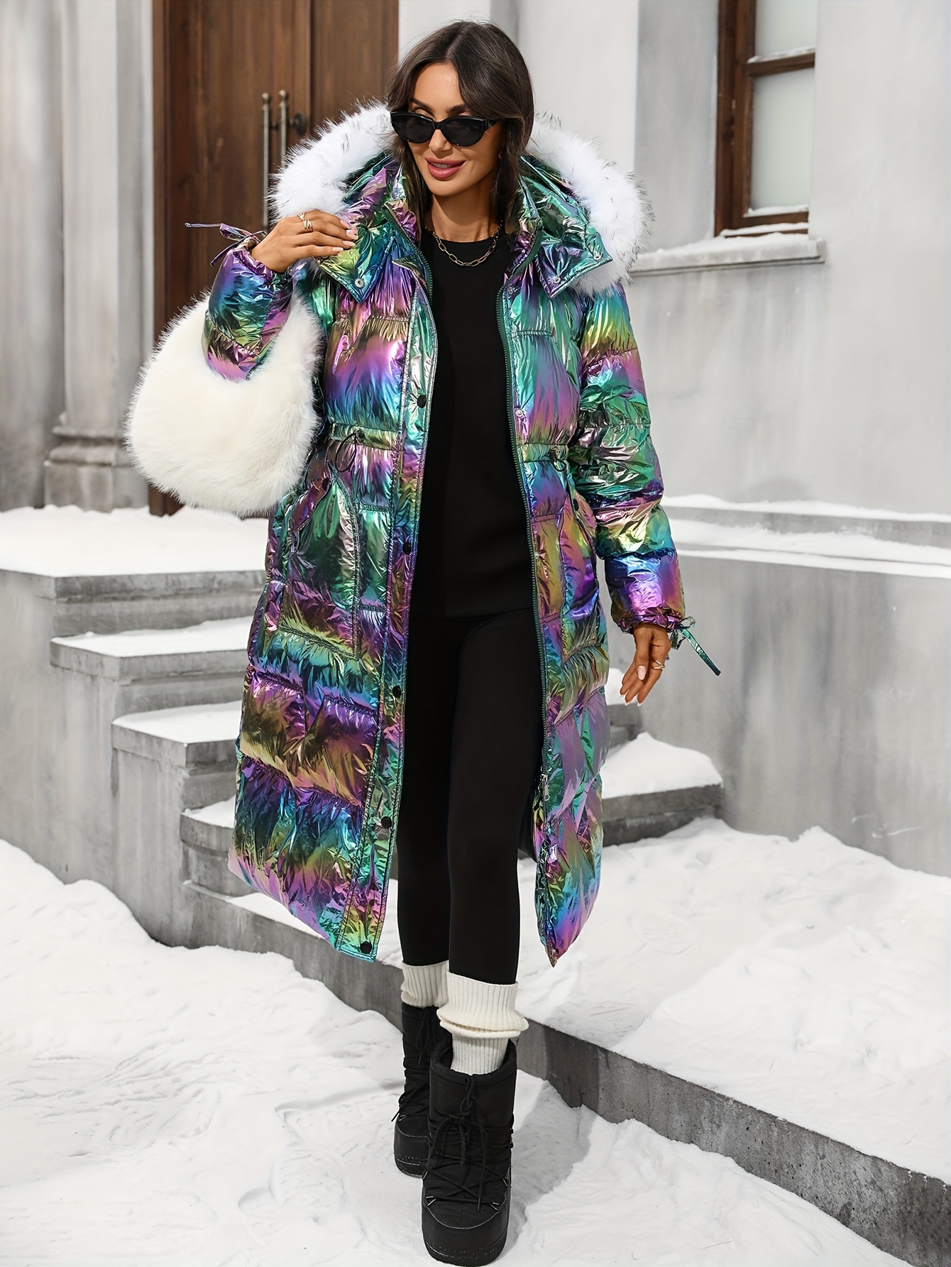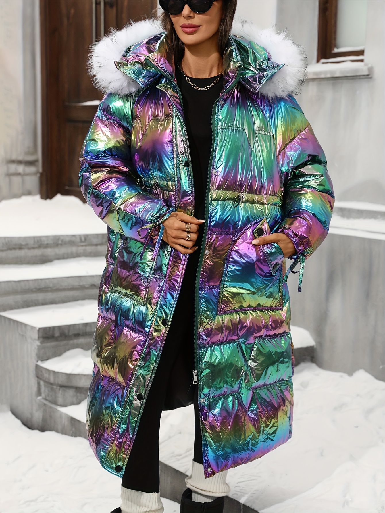 Plus Size - Plus Size, Women'S Plus Size Winter Jacket - Elegant Hooded Coat with Full-Zip Closure, Non-Stretch Fabric, Long Sleeve Cold Weather Outerwear, Plus Size Friendly (no Belt Needed) - Elegant Outerwear For Everyday & Formal Eve