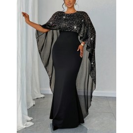 Plus Size - Plus Size, Women'S Elegant Formal Party Dress - Flowy Long Evening Gown with Round Neck, Non-Stretchy Fabric for Weddings, Galas, Business Events - All-Season Formal Attire, Formal Dresses, Wedding Guest Attire, Graceful Silhouette, Sophisticated Craftsmanship, Gala Attire, Stylish Eveningwear, Premium Material, Fashionforward Women