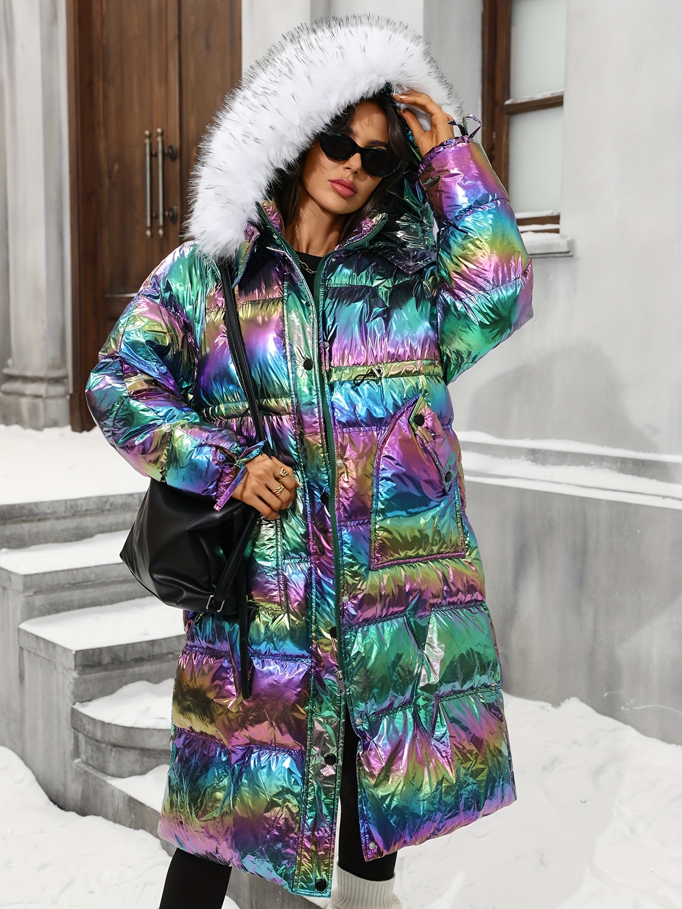 Plus Size - Plus Size, Women'S Plus Size Winter Jacket - Elegant Hooded Coat with Full-Zip Closure, Non-Stretch Fabric, Long Sleeve Cold Weather Outerwear, Plus Size Friendly (no Belt Needed) - Elegant Outerwear For Everyday & Formal Eve