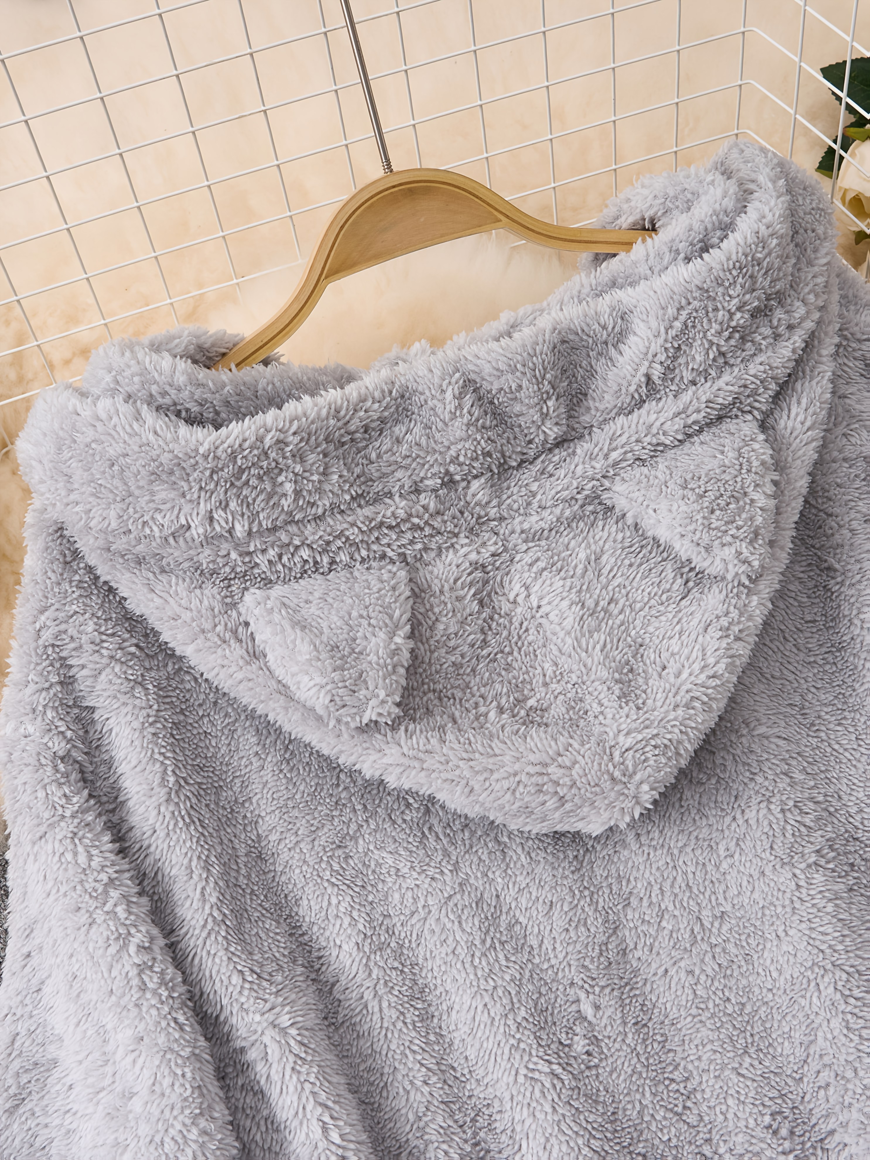 Plus Size, Women's Plus Size Oversized Valentine's Day Heart Print Hooded Sweatshirt - Grey with Pink & Red Hearts, Cozy Casual Pullover with Pockets, Machine Washable Winter Fall Hooded Sweatshirt for Valentine's Outfits